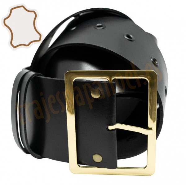 El cinturón de cuero negro de Papá Noel tiene un aspecto elegante y es un elemento importante en el disfraz. El cinturón tiene una longitud que se adapta a la considerable circunferencia de la barriga de Papá Noel (165 cm) y tiene un amplio rango de ajuste gracias a sus 26 orificios y dos trabillas, por lo que con seguridad se adaptará a cualquier talla (tanto a la barriga real como a la postiza). El cinturón de Papá Noel está confeccionado con cuero ecológico y reforzado con un inserto textil, lo que lo hace muy resistente. Mide 7 cm de ancho, mucho más que los típicos cinturones para pantalón. También dispone de una hermosa hebilla de 9 centímetros en oro claro. ¡El Papá Noel que lleve este cinturón de cuero tendrá un aspecto realmente distinguido!